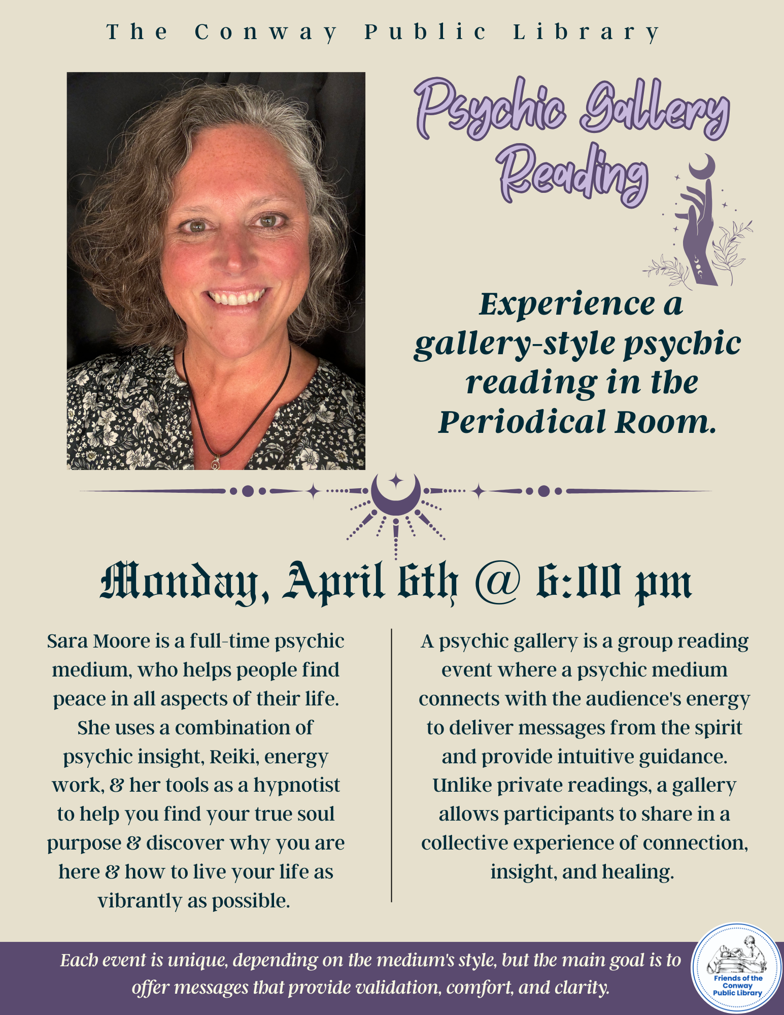 Sara Moore is a full-time psychic medium, who helps people find peace in all aspects of their life. She uses a combination of psychic insight, Reiki, energy work, & her tools as a hypnotist to help you find your true soul purpose & discover why you are here & how to live your life as vibrantly as possible.