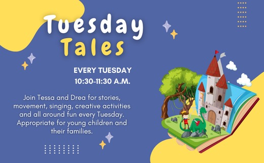 Join Tessa and Drea for a fun-filled hour every Tuesday from 10:30 AM to 11:30 AM in the Ham Room! Enjoy stories, movement, singing, and creative activities that spark imagination. Caregiver involvement is highly encouraged as a way to promote bonding and the modeling of listening, engagement and learning.