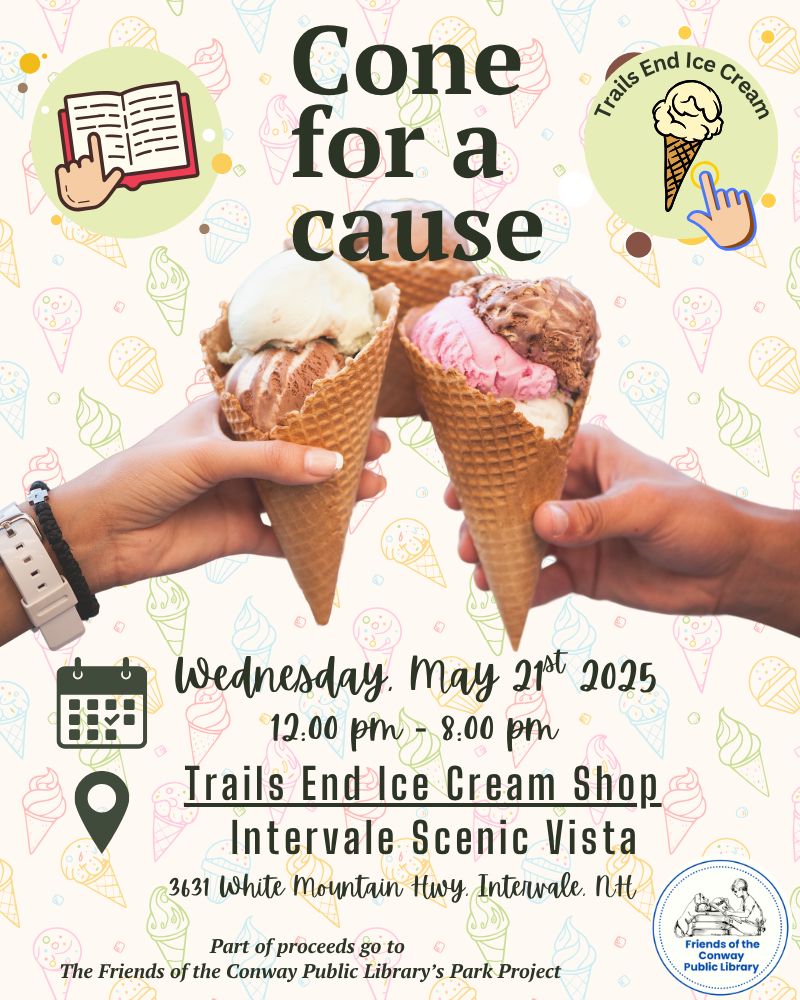 Part of the proceeds go to the Friends of the Conway Public Library's Park Project.