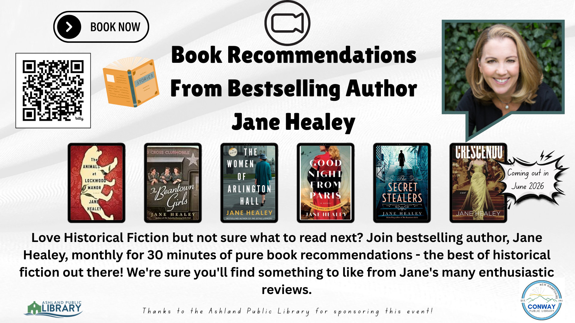 Love Historical Fiction but not sure what to read next? Join bestselling author, Jane Healey, monthly for 30 minutes of pure book recommendations - the best of historical fiction out there! We're sure you'll find something to like from Jane's many enthusiastic reviews. You can sign up for one session or for all!